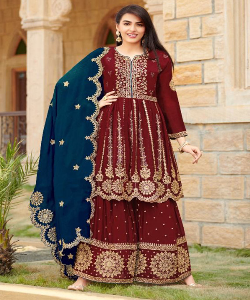 Anarkali-ropa de fiesta de diseñador, nuevo aspecto, seda bordada, trabajo de piedra, India, fabricación de ropa, longitud completa, patiyala cosida