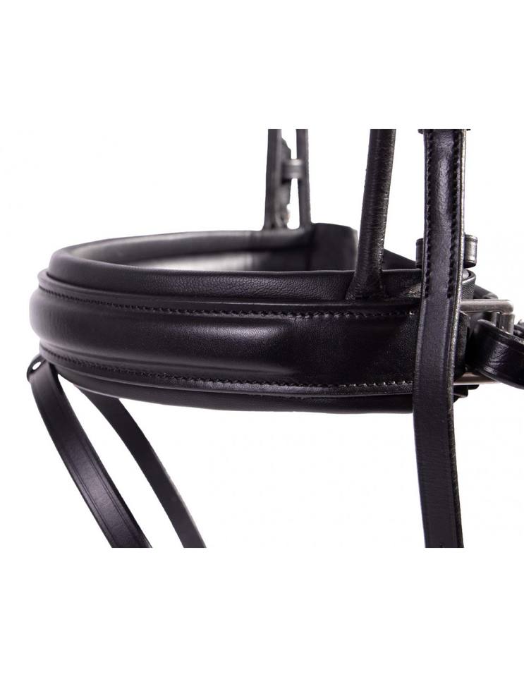Cuero de brida redondo de forma anatómica con piezas de mejilla cosidas redondas y pestillo de garganta