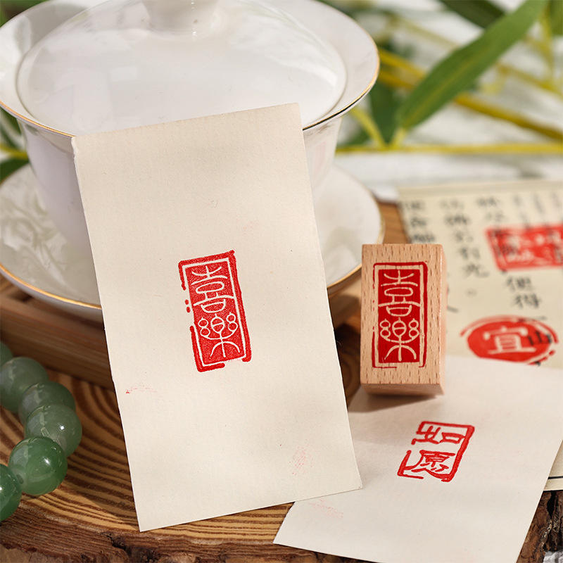Texto antiguo DIY Sello hecho a mano Caligrafía Madera Estilo Chino básico Diario Sello de ocio