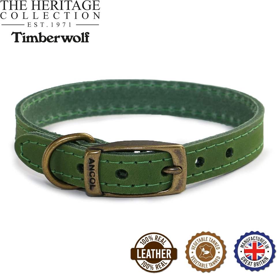 Collar de Cuero Ancol Timberwolf para Perros, Verde, Talla 3 (28-36 cm)