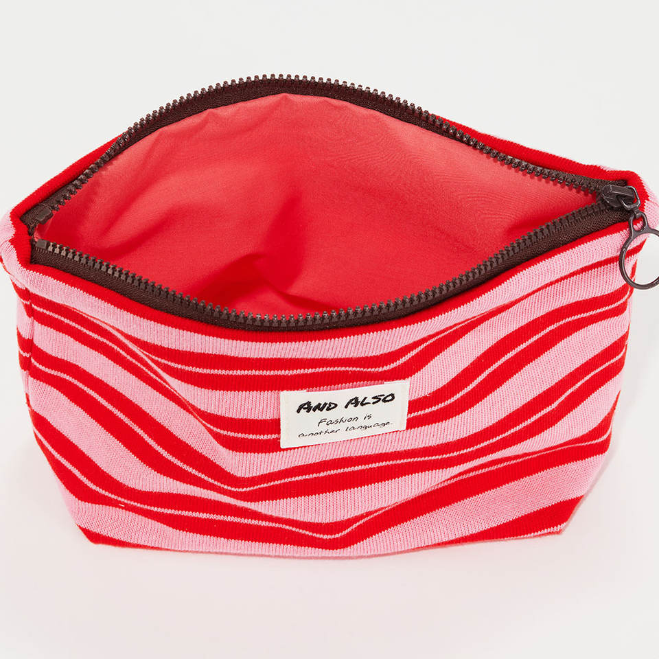 [Y también] Elegante bolsa de rayas Maquillaje Bolsa de cosméticos Organizador de cremallera portátil Bolsa de viaje ligera para elementos esenciales