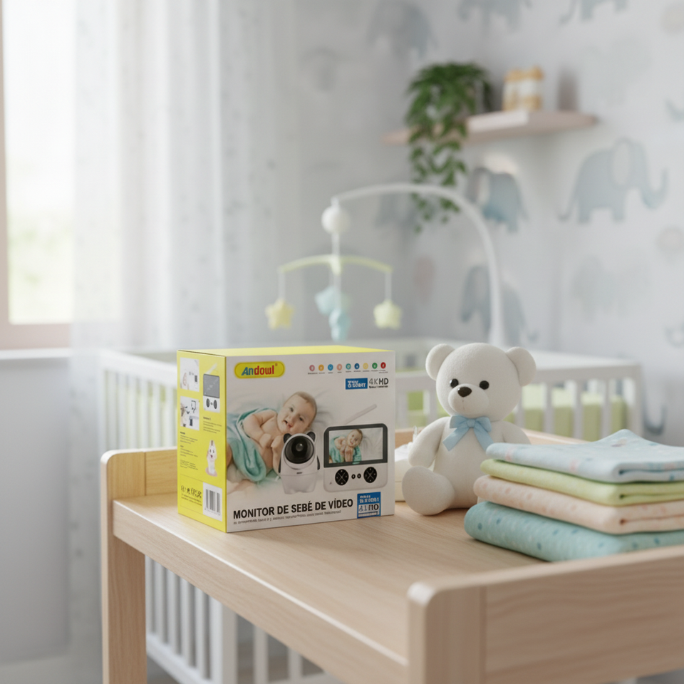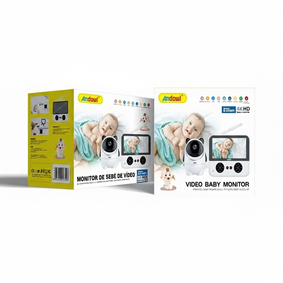 Monitor para Bebés Andaul con Video HD 720P y Visión Nocturna, Adaptador de Corriente de Plástico y ABS para el Cuidado Infantil