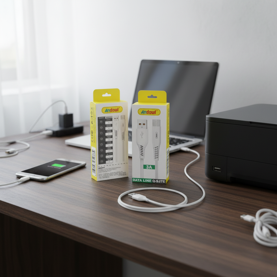 Cable de Carga Rápida V8 de 1m Micro-USB a USB 3A para Dispositivos Android, Impresoras y Teléfonos, Modelo Q-SJ7E