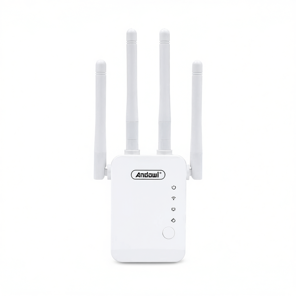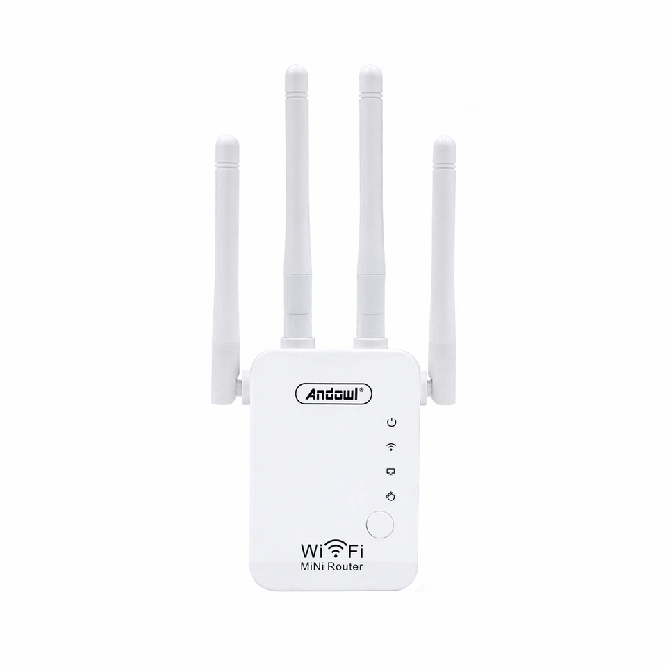 Andowl Mini Router Repetidor WiFi de 2.4GHz con 4 Antenas Blanco