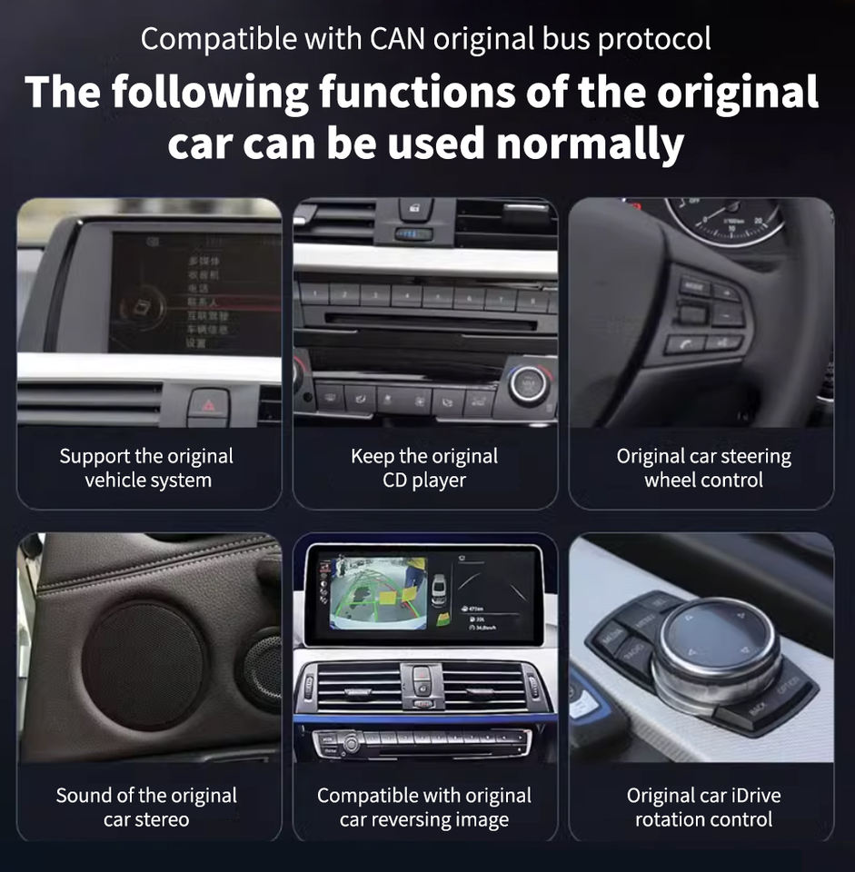 CarPlay, Enlace espejo, Android auto, Compatible con Bluetooth, MP3/MP4, Pantalla táctil, Otros, Sintonizador Radio, 3D mapa, Cámara de copia de seguridad, Control del Volante, Pantalla dividida, Invertir la ayuda, MultiMedia apoya, Construir-en el micrófono