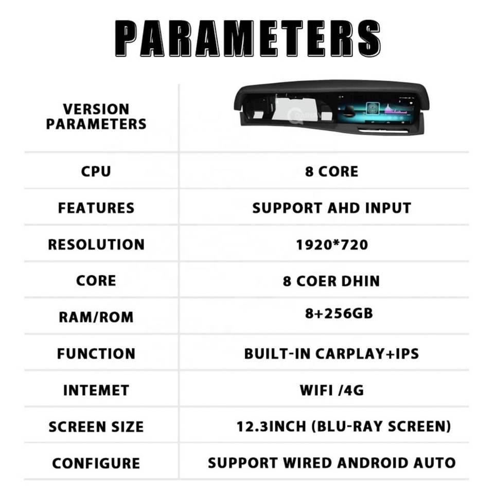 CarPlay, Android auto, Compatible con Bluetooth, Construir-En DSP, MP3/MP4, Pantalla táctil, Visor de imágenes, Sintonizador Radio, Control remoto, Amplificador, 3D mapa, Cámara de copia de seguridad, Guía de voz, Control del Volante, Pantalla dividida, Carretera de planificación, Distancia de advertencia, Invertir la ayuda, En directo/aparcamiento, En directo/Live el tráfico, MultiMedia apoya, De modo Dual, sistema de navegación, Velocidad de alerta, Construir-en el micrófono, Descarga la aplicación desde Play StoreFunción