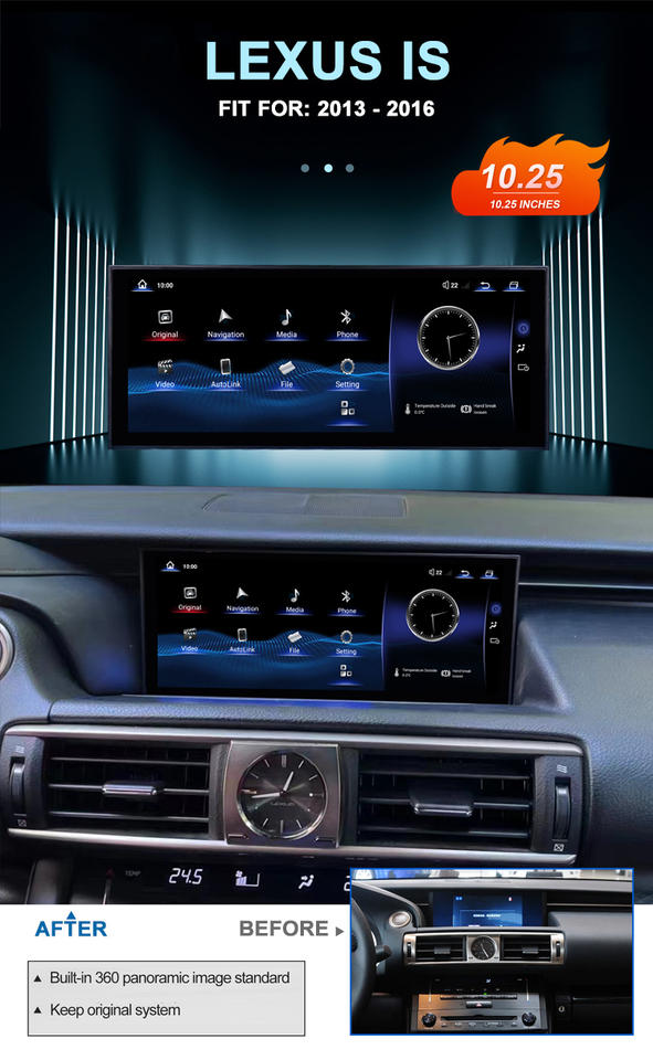 Android 13 10,25 "Pantalla táctil Qualcomm 8 Core coche Radio GPS navegación Carpay Android AUTO para Lexus IS250 IS350