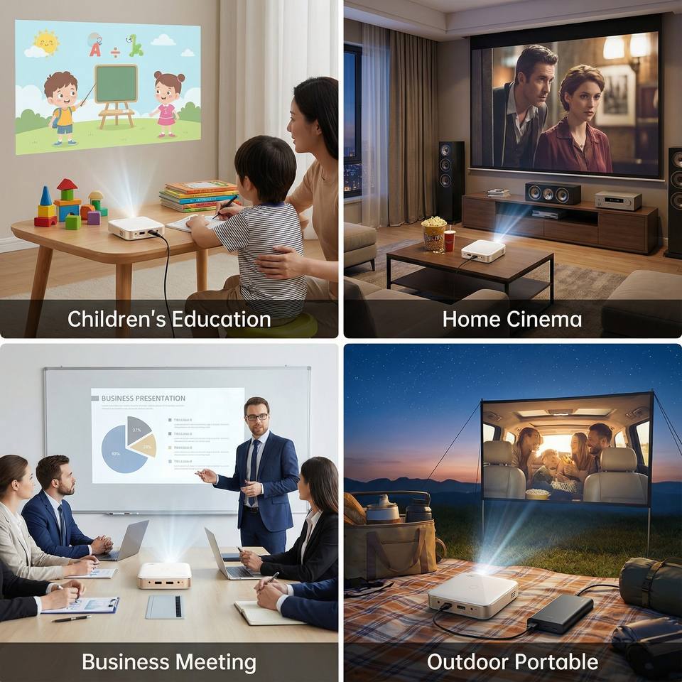 Mini Proyector DLP Inteligente Android 13, 200 Full HD 4K LED, Batería Integrada, Proyector Inalámbrico para Teléfonos Móviles/Tabletas, 2G RAM, Portátil