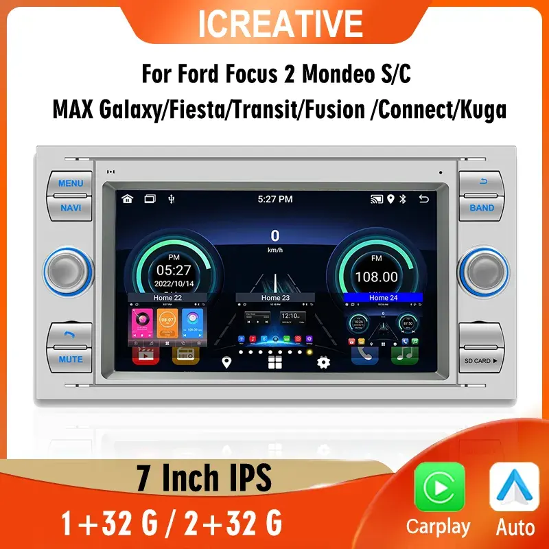 Radio de coche con pantalla táctil Android 2Din para Ford Focus/2 Mondeo/S/C/MAX/Kuga/Fiesta/Galaxy/Transit 7 ''navegador GPS mapas 3D