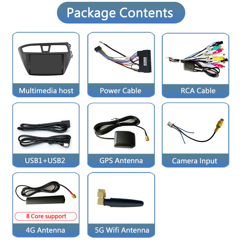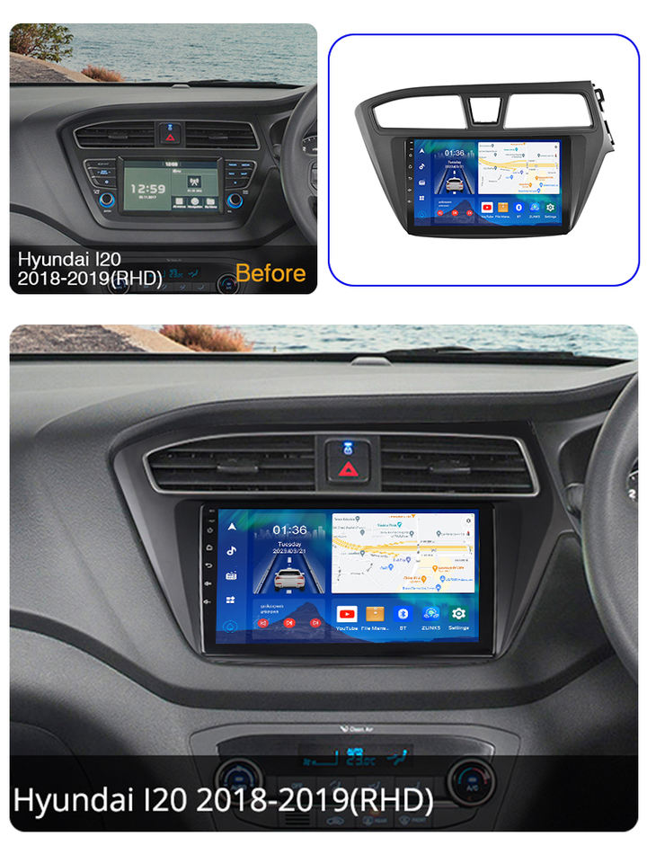 Reproductor Multimedia para Auto con Android Auto, Carplay y Mirror Link, para Hyundai I20 2018 2019, con Navegación GPS, WiFi y Bluetooth