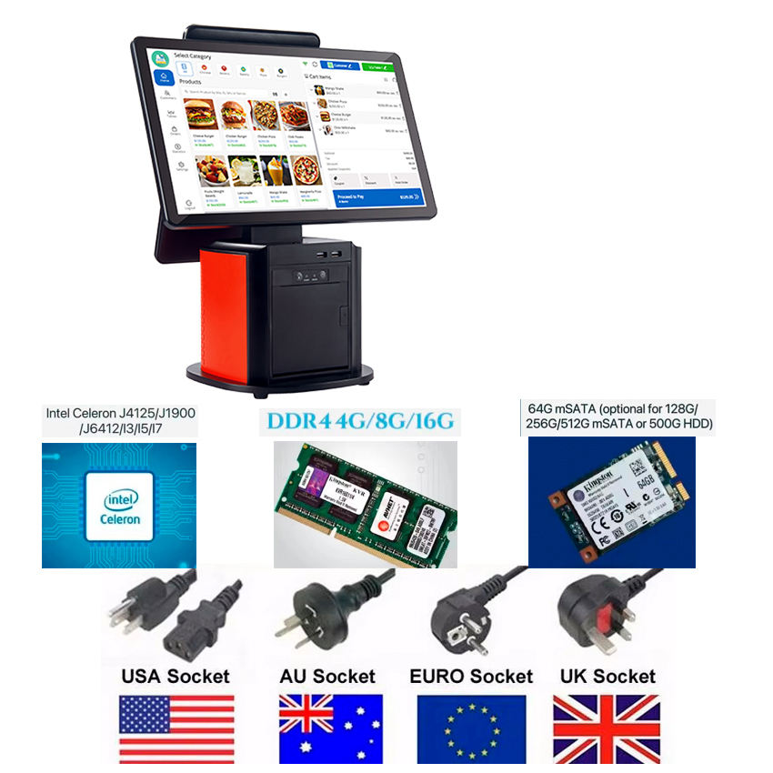 Software POS para Tableta de Escritorio Basado en Android, Pantalla Táctil de 15 Pulgadas, CPU Intel, Quiosco de Pago de Autoservicio para Hoteles con Función de Menú