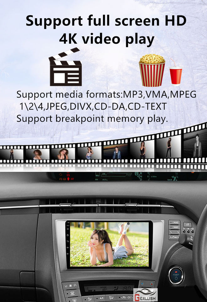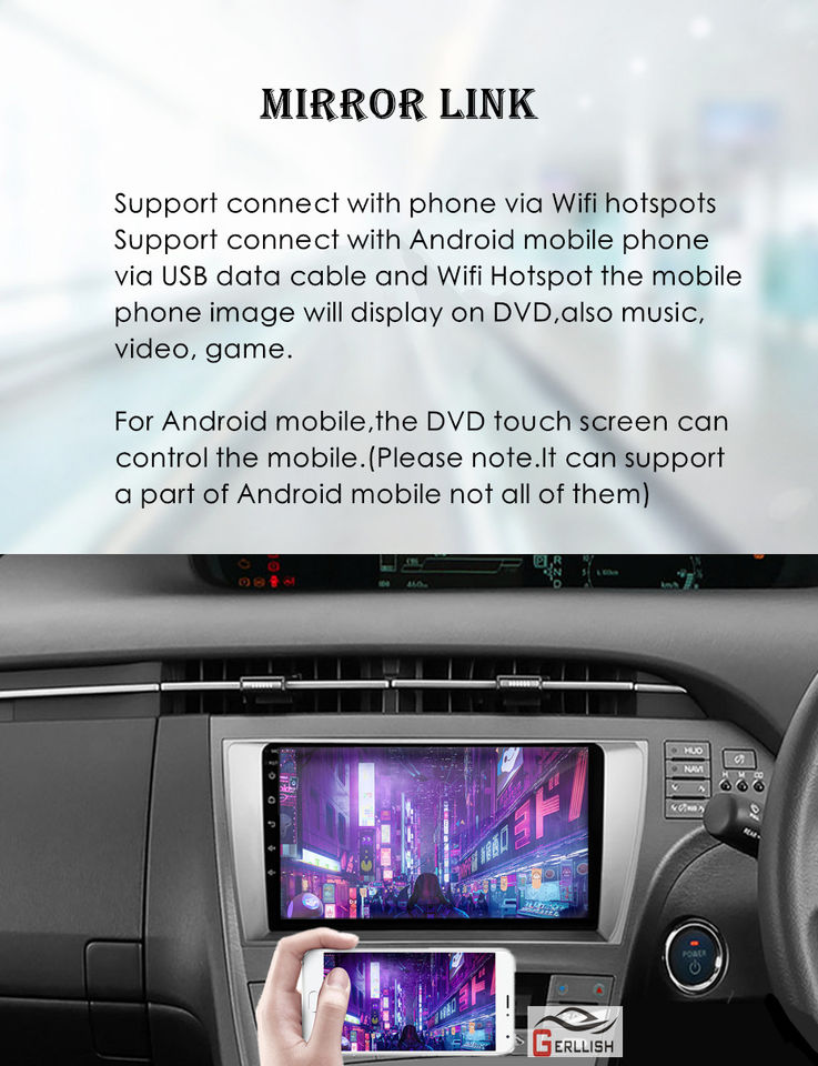 GPS incorporado, Reproductores MP3 / MP4, Sintonizador Radio, Pantalla táctil, Transmisor FM, Puerto AUX, Invertir la ayuda, Tienda de juegos Playstore, DVR (opcional)Combinación
