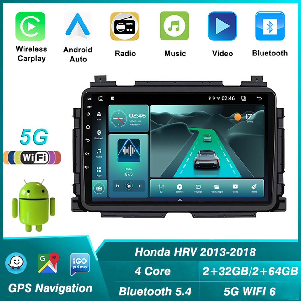 Reproductor de Radio para Auto Android para Honda HRV HR-V Vezel XRV 2013-2018, Multimedia, Video, GPS, Navegación, BT5.4, 5G, WiFi 6, Unidad Principal