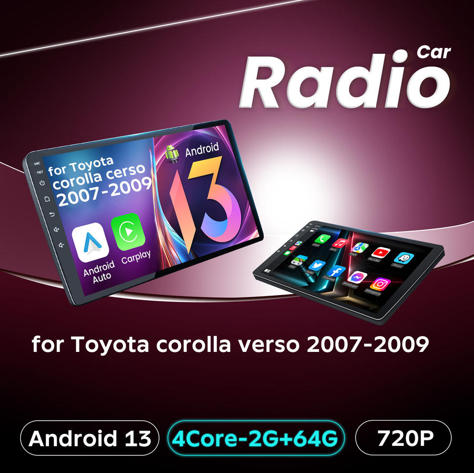 Radio Android para Auto TOYOTA Corolla Verso 2004-2009, Radio Carplay con GPS y Navegación, Radio Universal Android 13 de 7 Pulgadas, Reproductor de 2+64 GB