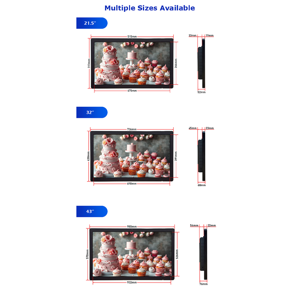 Pantalla Digital de Menú Android de 21.5, 32 y 43 Pulgadas, Pantalla Pequeña de Publicidad Digital para Interiores, Multimedia con CMS Gratuito