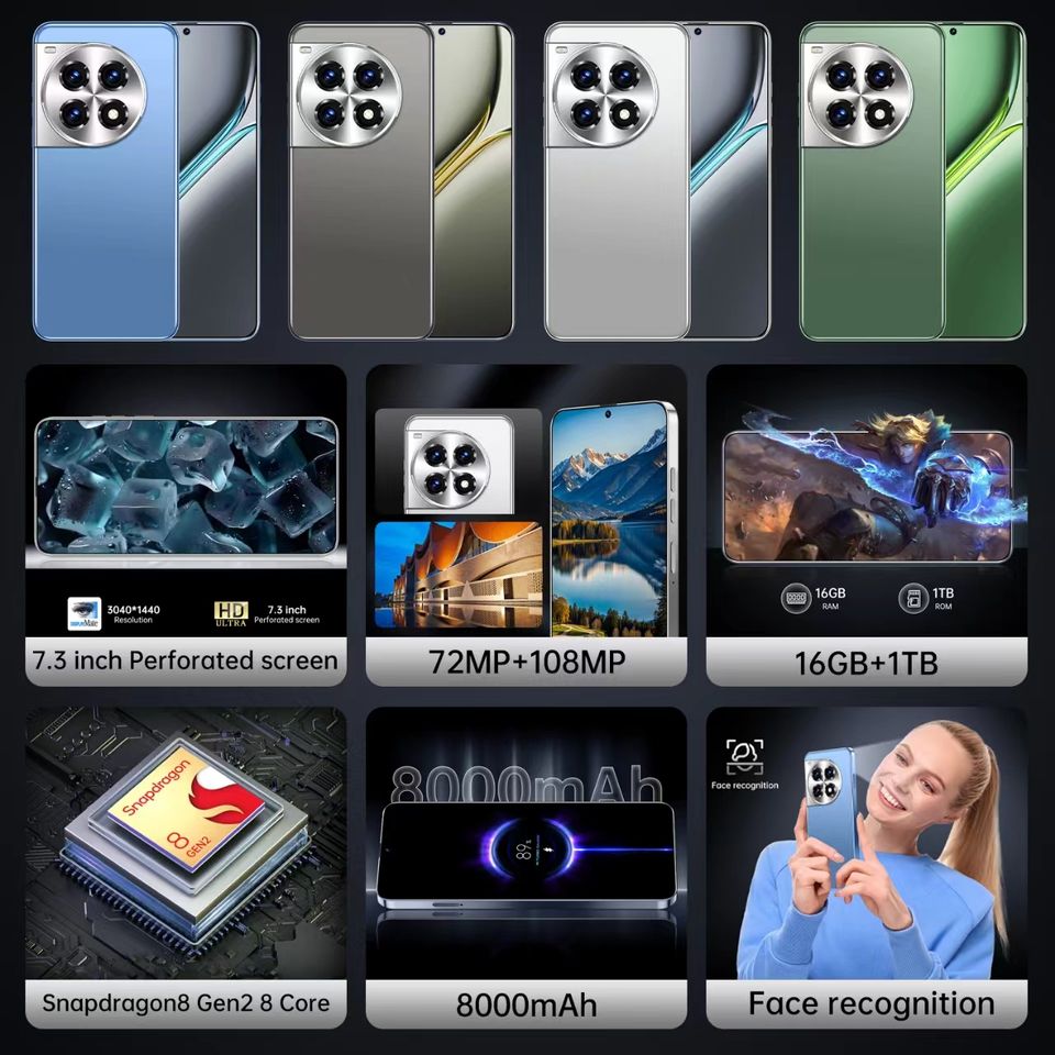 Teléfono inteligente Android Oneplus de 7,3 pulgadas, 16 + 1TB, tarjeta Sim Dual para juegos, buscapersonas para teléfono móvil, alternativa para transferencia de mensajes eficiente