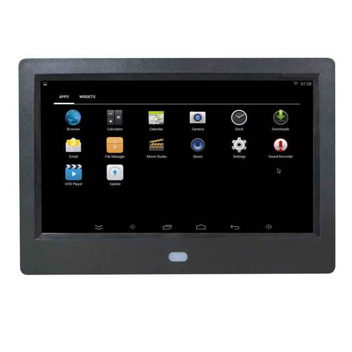 Marco Digital Inteligente Android con Pantalla Táctil de 7 Pulgadas, Reloj, Reproductor MP4/MP3, USB/Tarjeta SD, WiFi, Google Play y Presentación de Diapositivas Mágicas