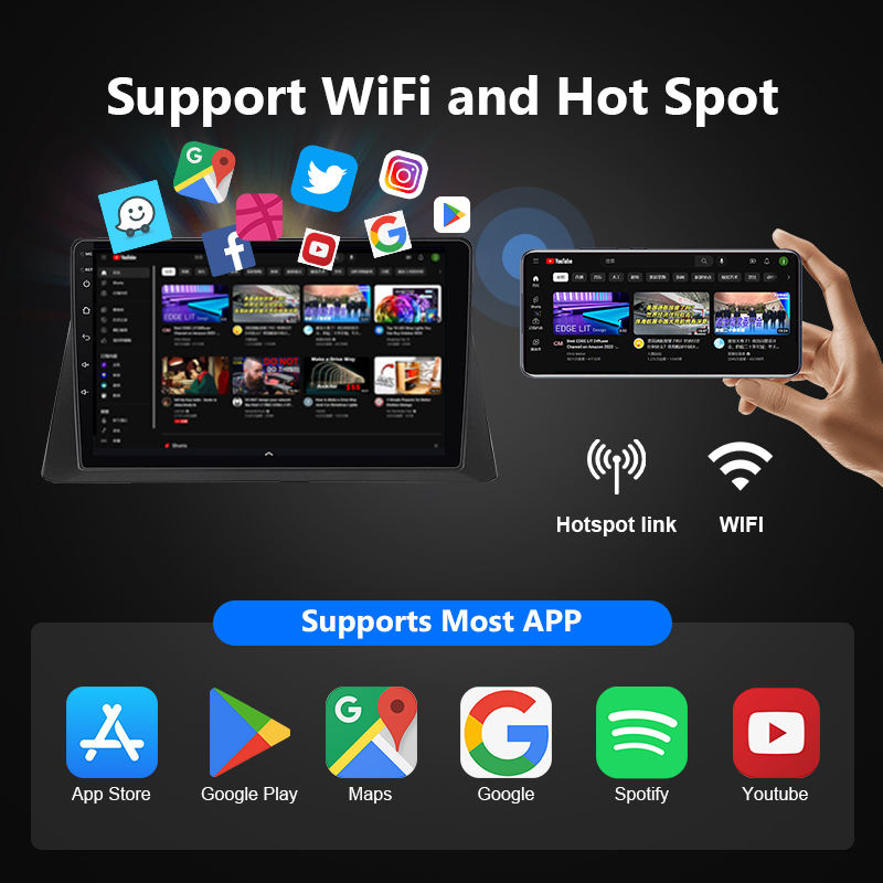 GPS, Estéreo, MANOS LIBRES, Control remoto, DSP, Enlace espejo, Android auto, Micrófono incorporado, Pantalla dividida, Administrador de archivos, Habilitado para BTFunción