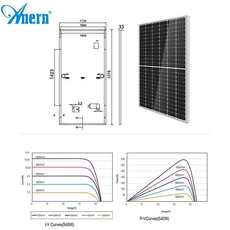 Anern Panel Solar 500 Watts 580 Watt 620W Paneles fotovoltaicos Mono Cristal Bifacial Solar Tejas Sistema Solar