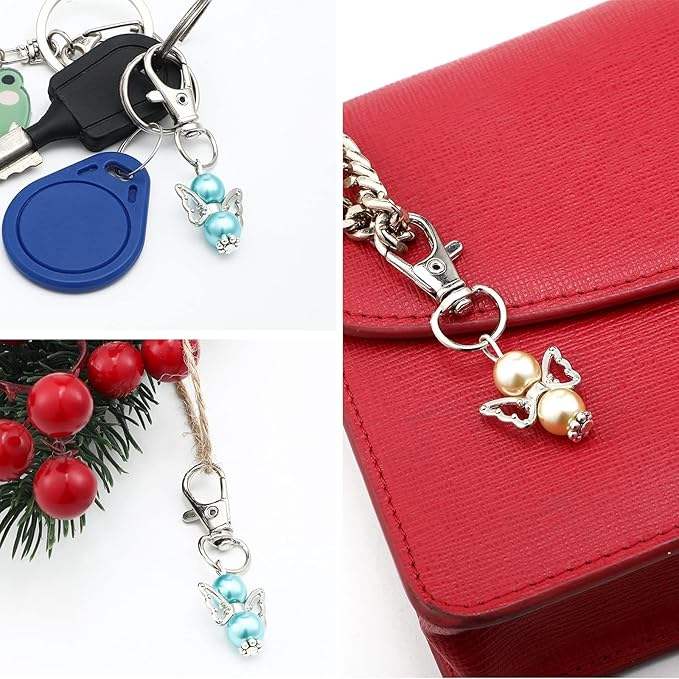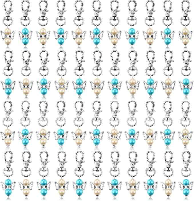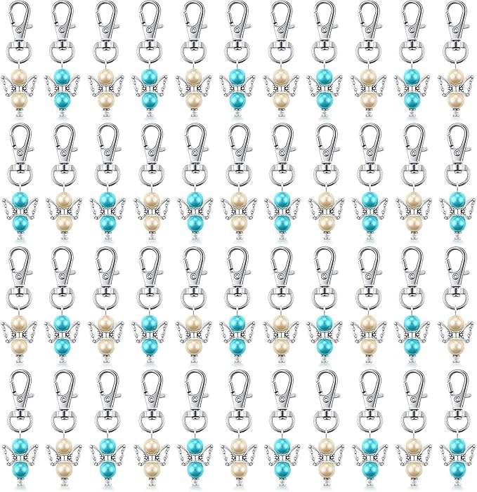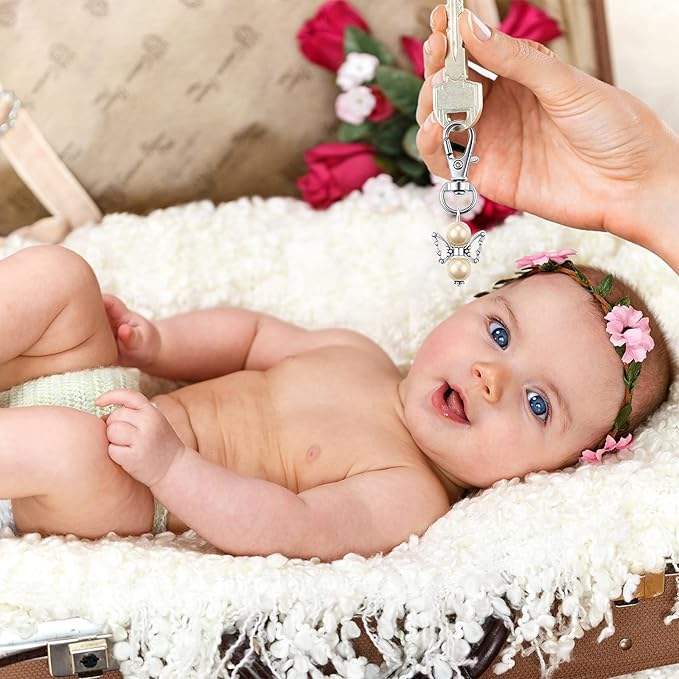 Llaveros de ángel con perlas, recuerdos de bautizo, detalles para invitados, llavero para niña, niño, baby shower, boda