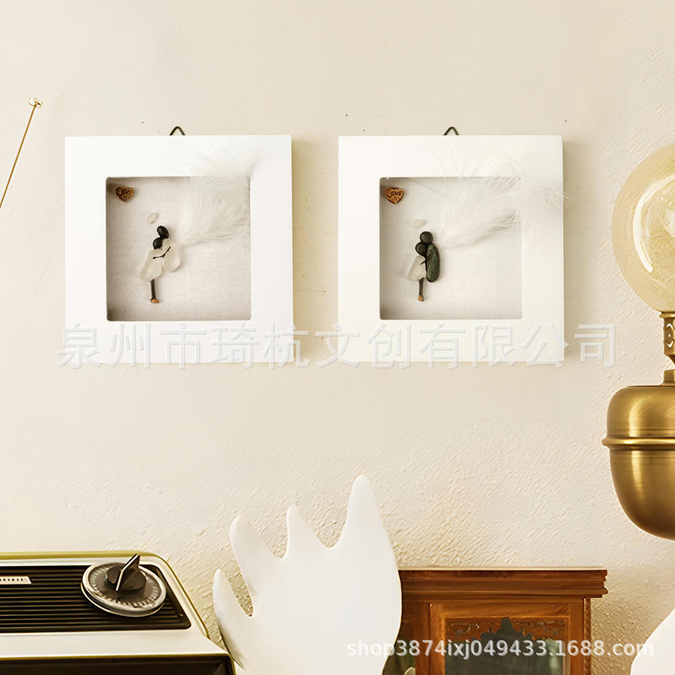 Marco de fotos de ángel, decoración de pared cuadrada, regalo hecho a mano para un amigo o pareja