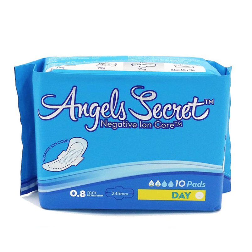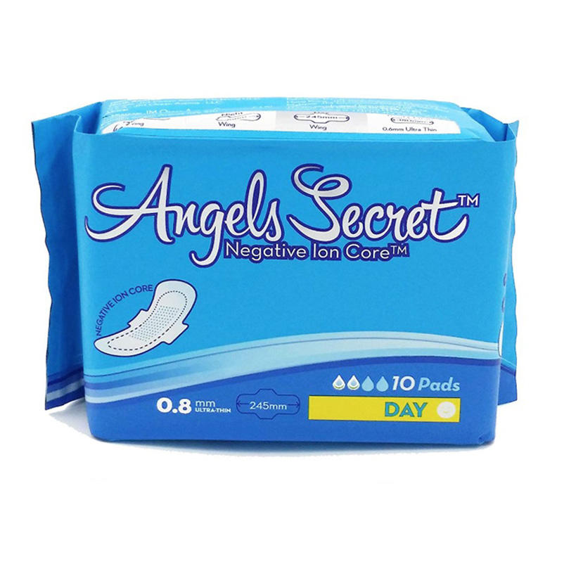 Toallas Sanitarias Angel Secret para Mujer, Algodón Suave, Color Azul, Tamaño 245 mm, Transpirables, para Chicas