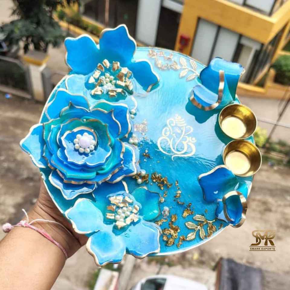 Thali de Resina Epoxi Artesanal Ecológica Estilo Ángel, Decoración Hecha a Mano para Diwali, Culto Tradicional, Templo en Casa