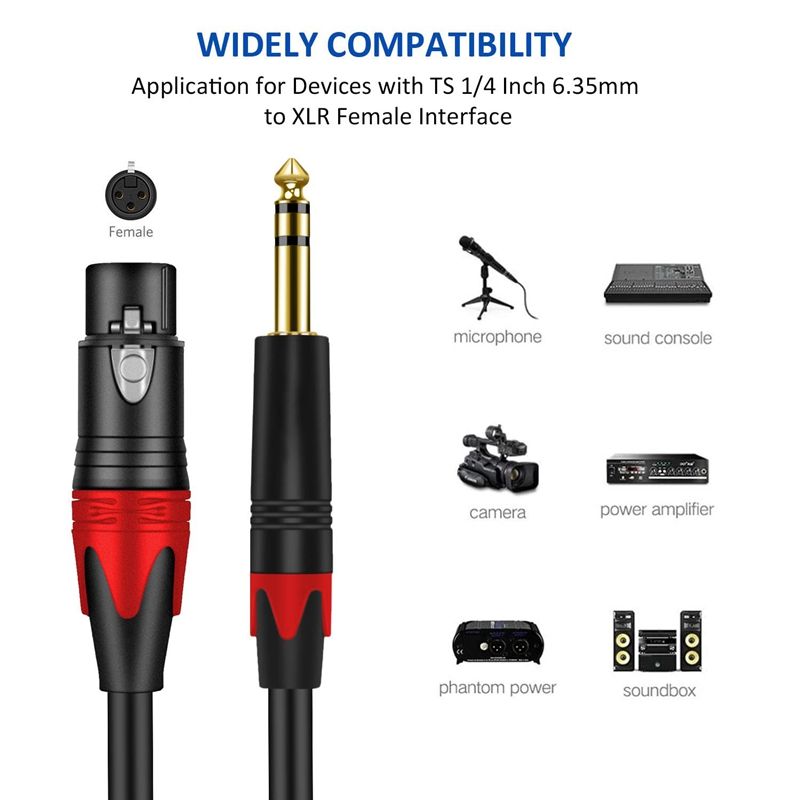 Angitu Sound Card Mixing Audio Box Cable de conexión de audio 3 Core 6,35 MM a XLR Cable de audio hembra