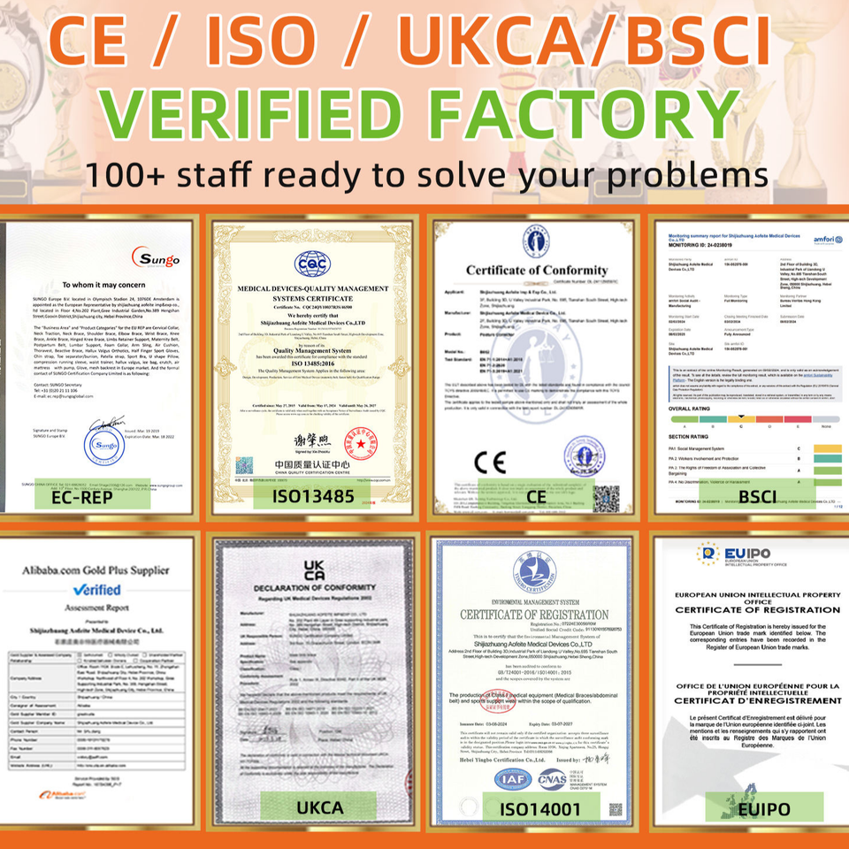 ISO9001,ISO13485,ISO14001,CE,EC-REP,UKCA,BSCI,SFDA