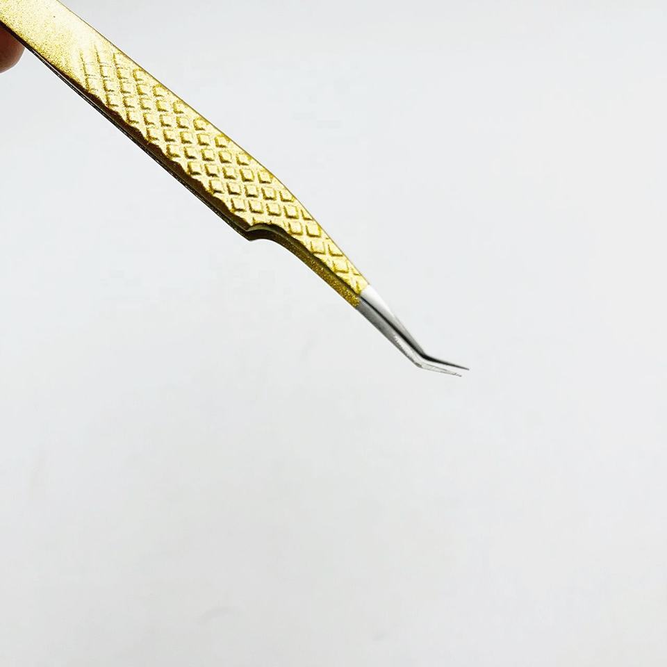 Pinzas de extensión de pestañas de acero de 45 grados sostenibles aceptadas con logotipo personalizado herramientas de recogida de pestañas postizas con agarre de diamante