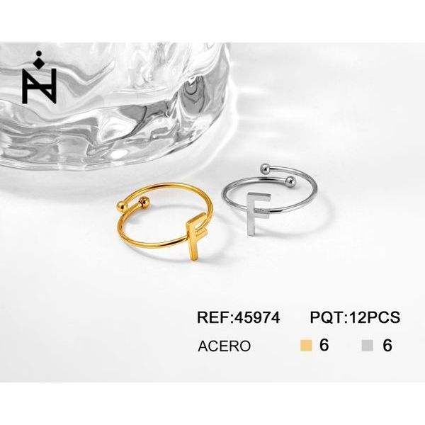 Anillo de Acero Inoxidable con Letra F, Joyería de Moda para Mujeres y Hombres, 6mm, Disponible en Colores Dorado y Plateado