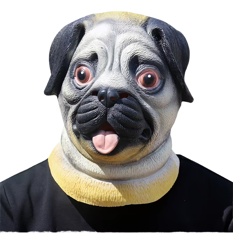 Máscara de látex Animal, máscara de Cosplay para perro, accesorios para disfraces de Halloween, máscara de cabeza de perro de látex Pug, suministros para fiesta de cumpleaños de Pekinés