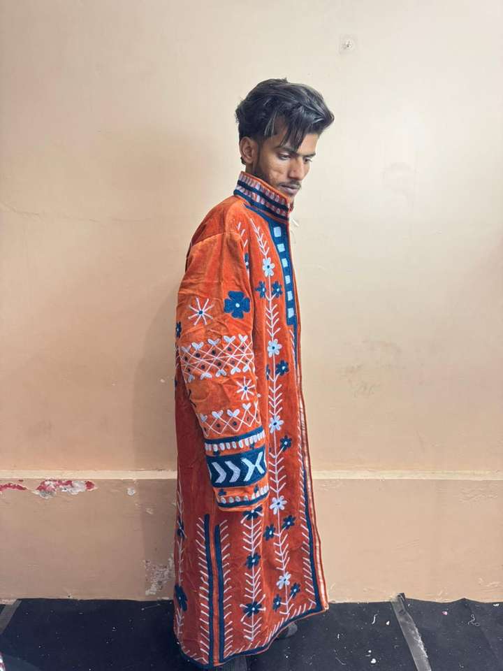 Chaqueta Varsity con Estampado Animal, Bordado a Mano con Patrón de Leopardo, Exterior de Cachemira Dobby, Forro de Piel de Oveja, Forro de Algodón, Estilo Étnico Boho