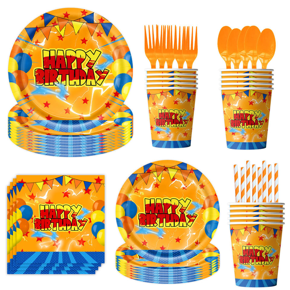 Bolas de Anime, vajilla de papel decorativa que incluye platos, vasos, utensilios, eventos de cumpleaños para niños, paquete de elementos esenciales para fiestas festivas