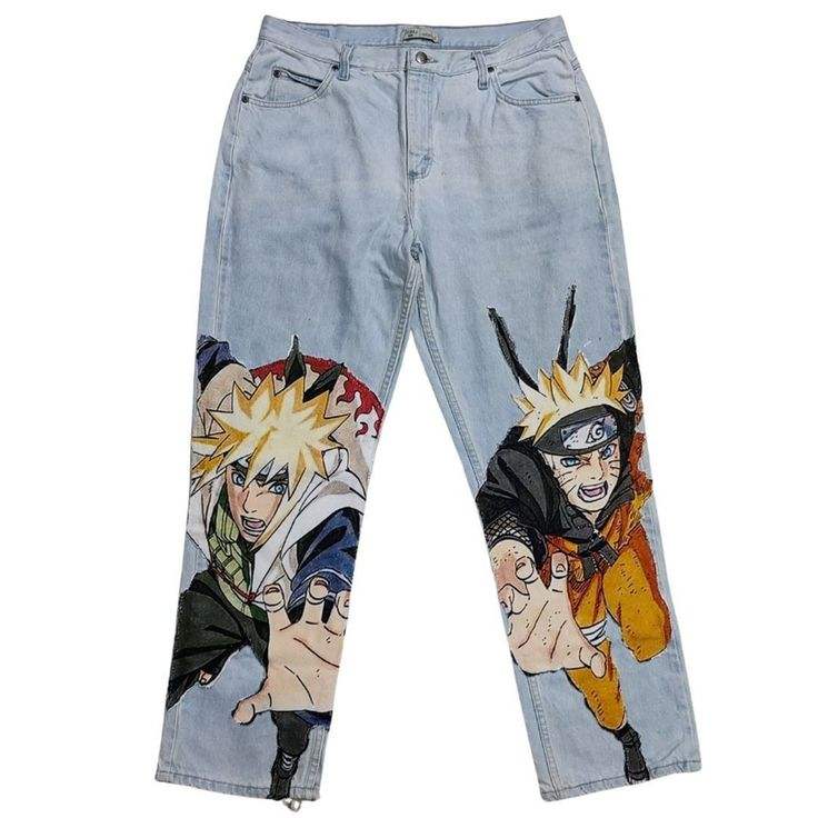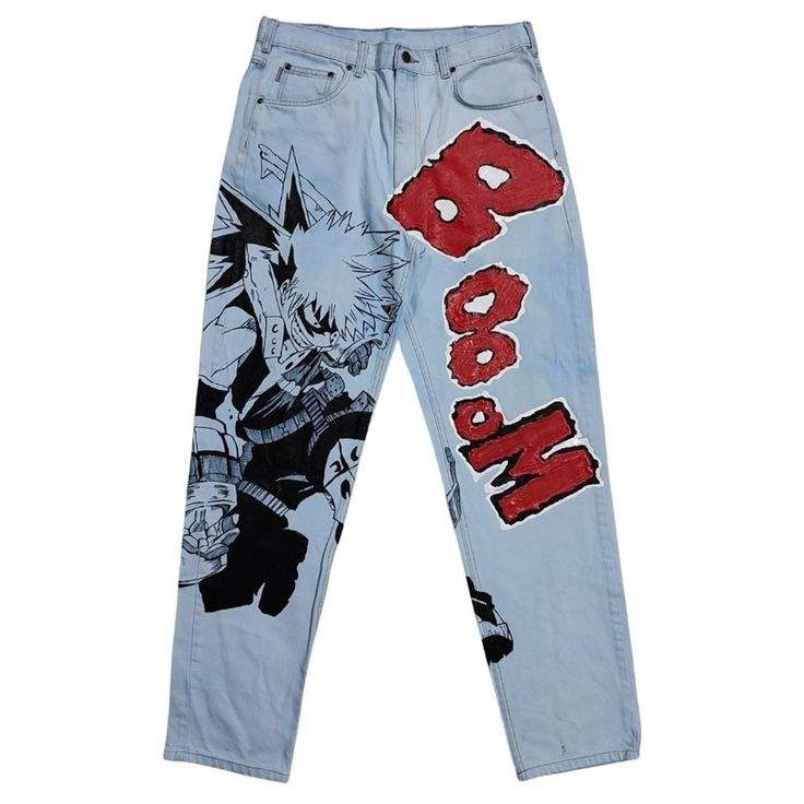 Pantalones Vaqueros Personalizados de Anime, Pintados a Mano, de Algodón, Corte Recto, Estilo Denim, Lavado Desgastado, Estilo Urbano, para Hombre