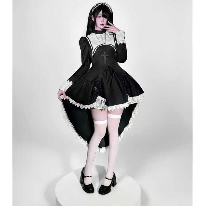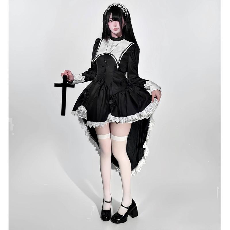 Nombre del producto:Faldas de monja de Halloween para niñas, disfraz de fiesta de cosplay