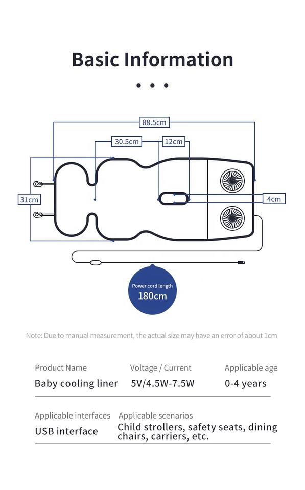 Cojín de Asiento para Bebé Anjuny 5V USB para Cochecito, Silla Alta, Carrito, con Ventilador