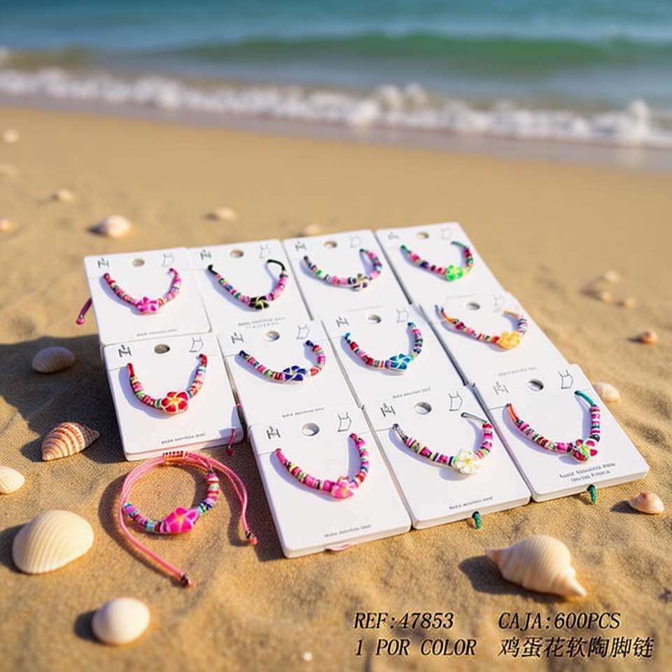 Tobilleras de Cerámica Suave con Flores, 600 Piezas por Color, Joyería de Moda para Mujeres y Niñas