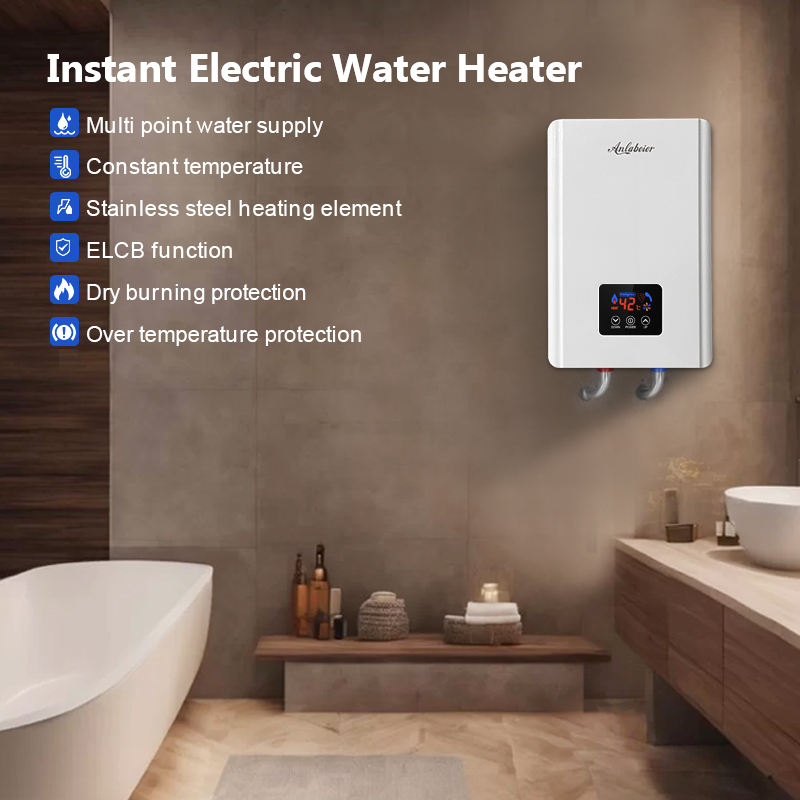 Calentador de agua eléctrico instantáneo con pantalla digital LED de 8kw de buena calidad de la marca Anlabeier para control táctil multipunto de toda la casa
