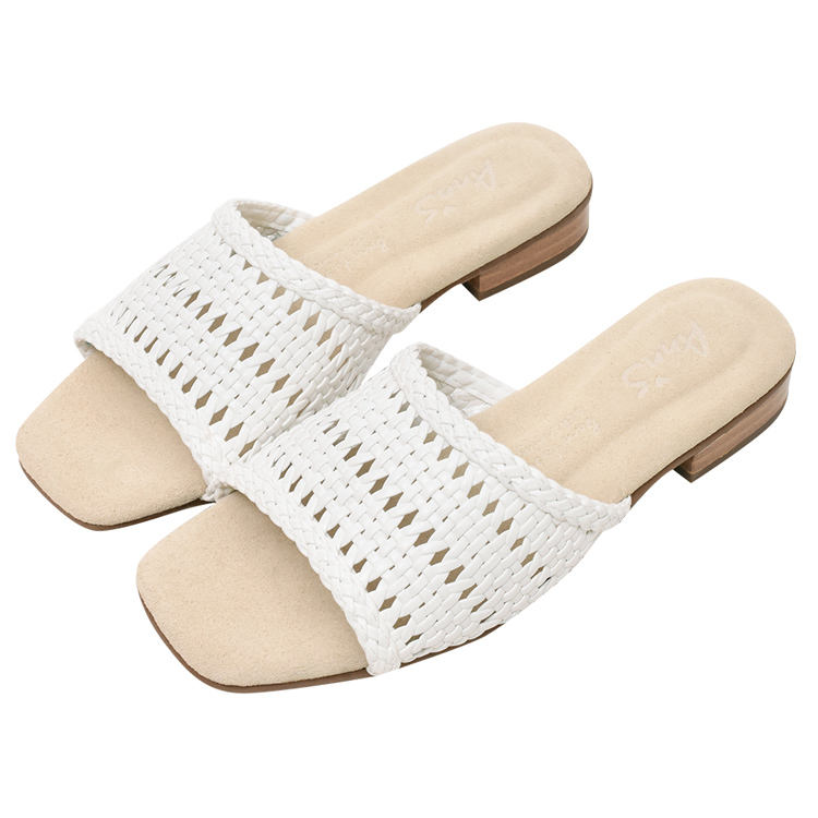 Sandalias blancas con punta abierta de Ann's, tejido hueco a mano con tacón de grano de madera de 2cm y tacón normal bajo, cómodas y elegantes