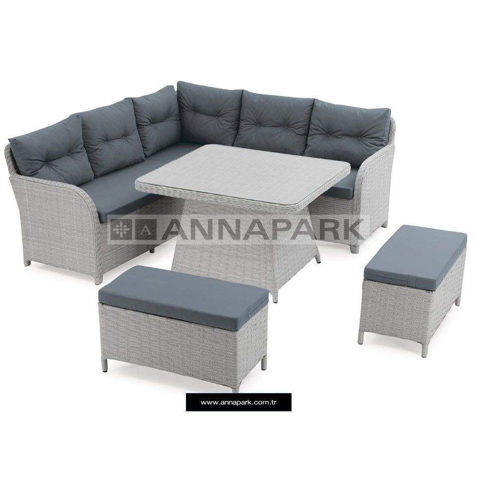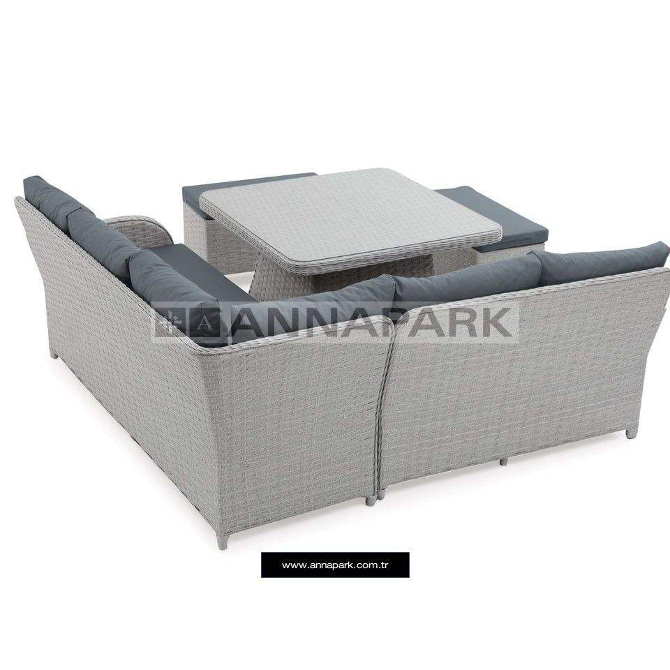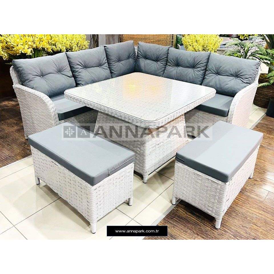 Annapark-Muebles modernos de exterior, juego de esquina de ratán gris claro con marco de acero, mesa para hoteles y jardines