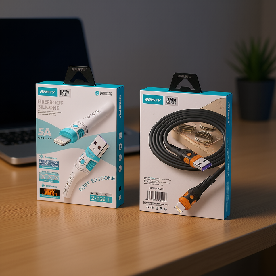 Cable de Datos Ansty 5A Tipo Lightning, Cable de Carga de Silicona Ignífugo, Negro, Modelo Z-036-I