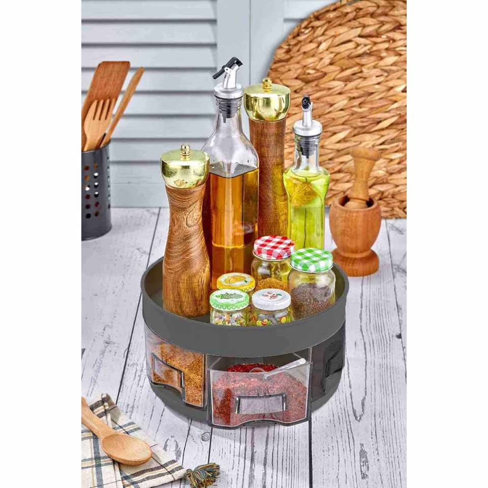 Organizador de Especias Giratorio de 360 Grados con 2 Niveles, de Plástico Resistente, para Cocina y Baño