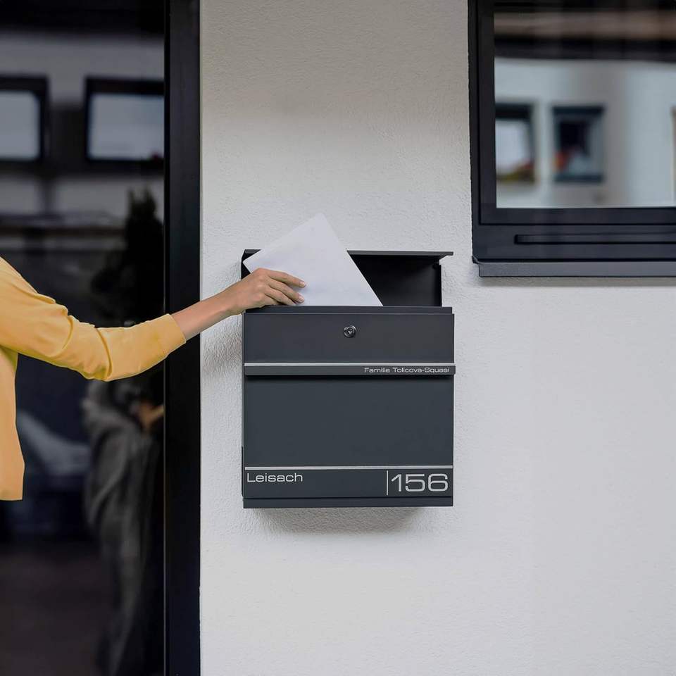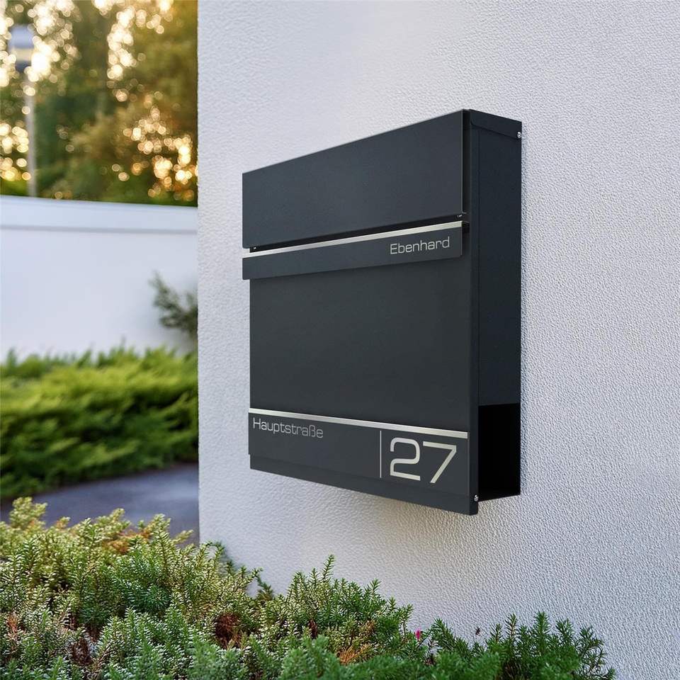 Buzón de pared moderno antracita Número de Casa Ranura de periódico personalizada Grabado láser Impermeable a prueba de herrumbre