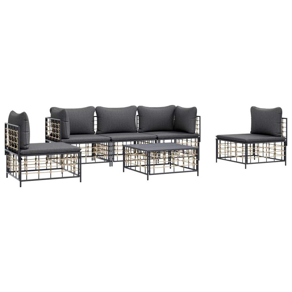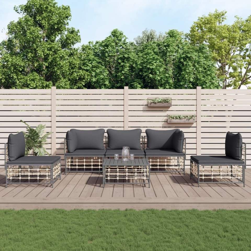 Conjunto de Muebles de Jardín de Poliratán Antracita con Acero con Recubrimiento en Polvo, Muebles de Exterior Duraderos