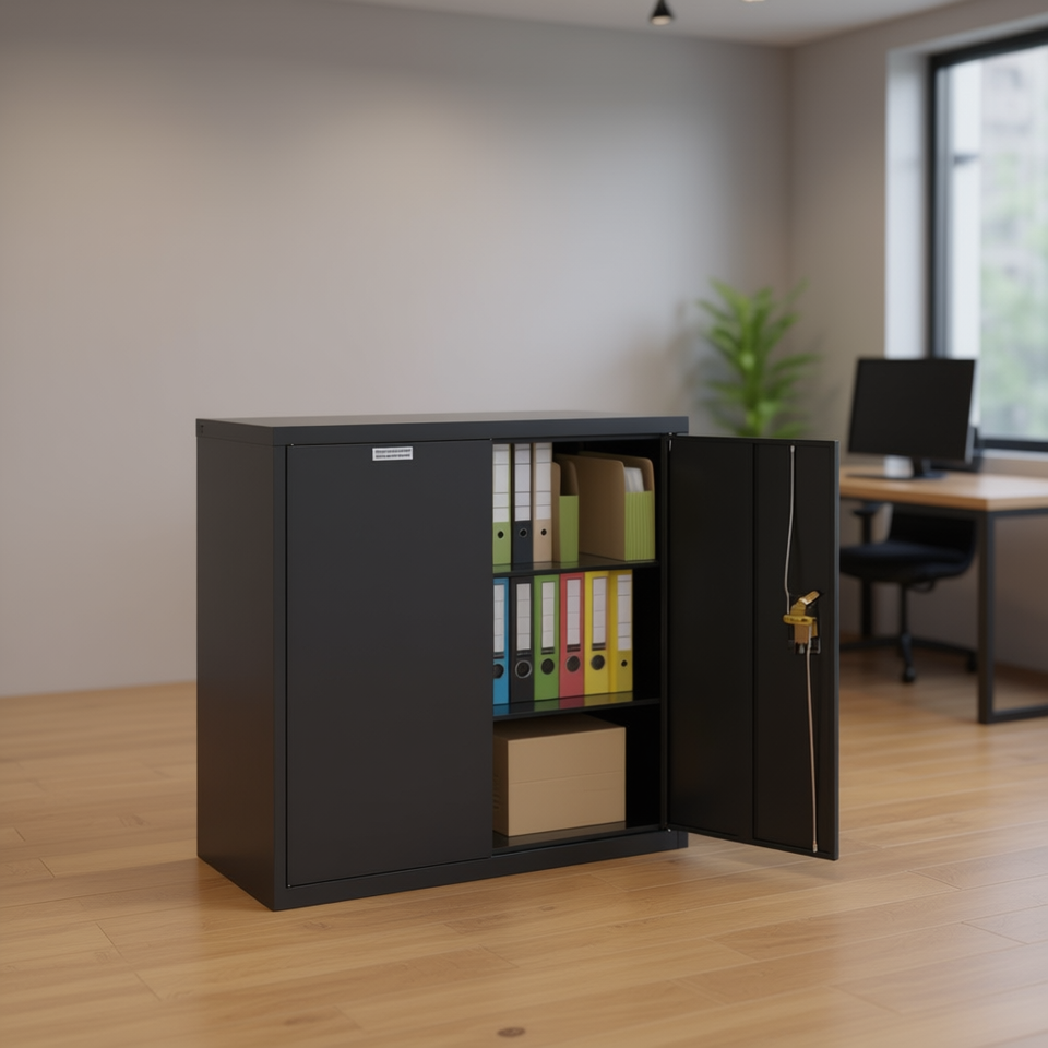 Archivador de Acero Antracita 1000x600x800mm con Cerradura de Llave, Mueble de Almacenamiento para Oficina