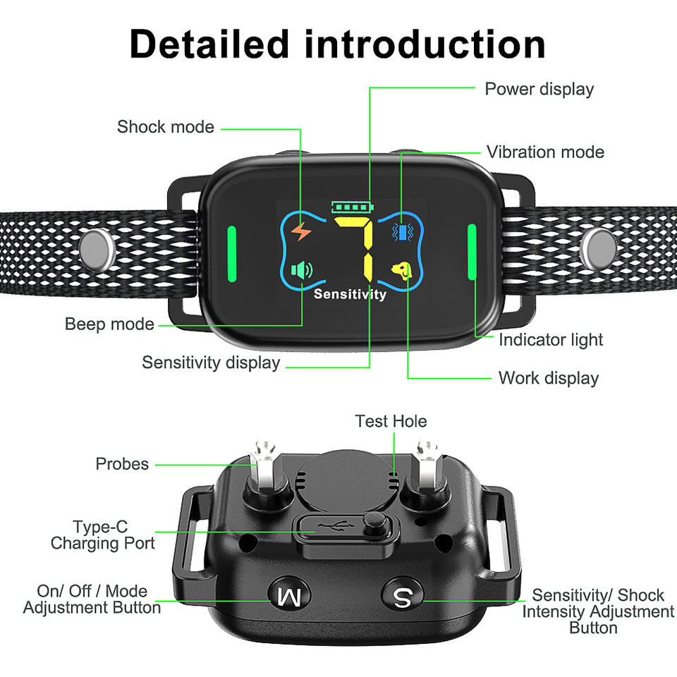 Collar Antiladridos con Pantalla a Color, Impermeable, Recargable, Dispositivo de Entrenamiento para Mascotas, Control de Ladridos para Perros