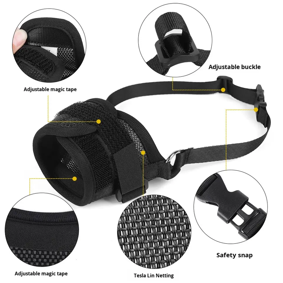 Máscara para Perro con Cierre de Velcro Ajustable, Transpirable, Anti-Mordidas y Anti-Ladridos, Nueva