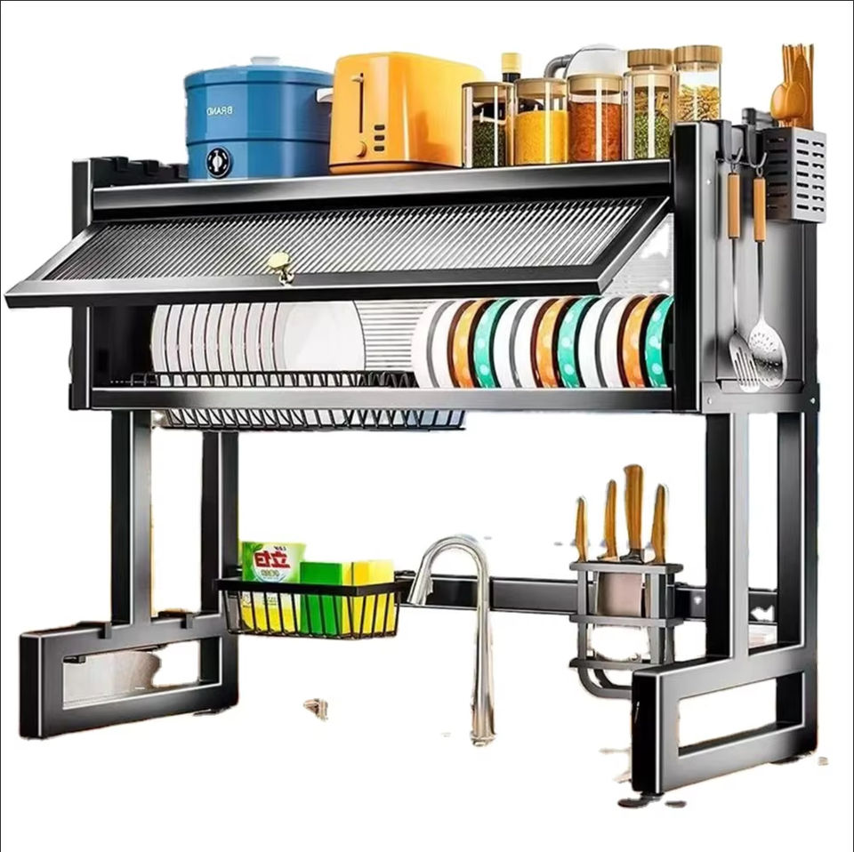 Escurridor de Platos Grande Antipolvo Sobre el Fregadero, Escurridor de Platos para Encimera de Cocina, Organizador Multifuncional, Estante de Almacenamiento