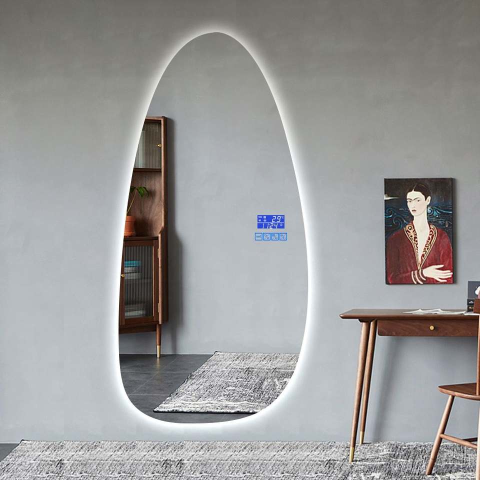 2025 tendencia antiexplosión impermeable colgante grande plata LED luz sin marco inteligente espejo personalizado sala de estar espejos de baño